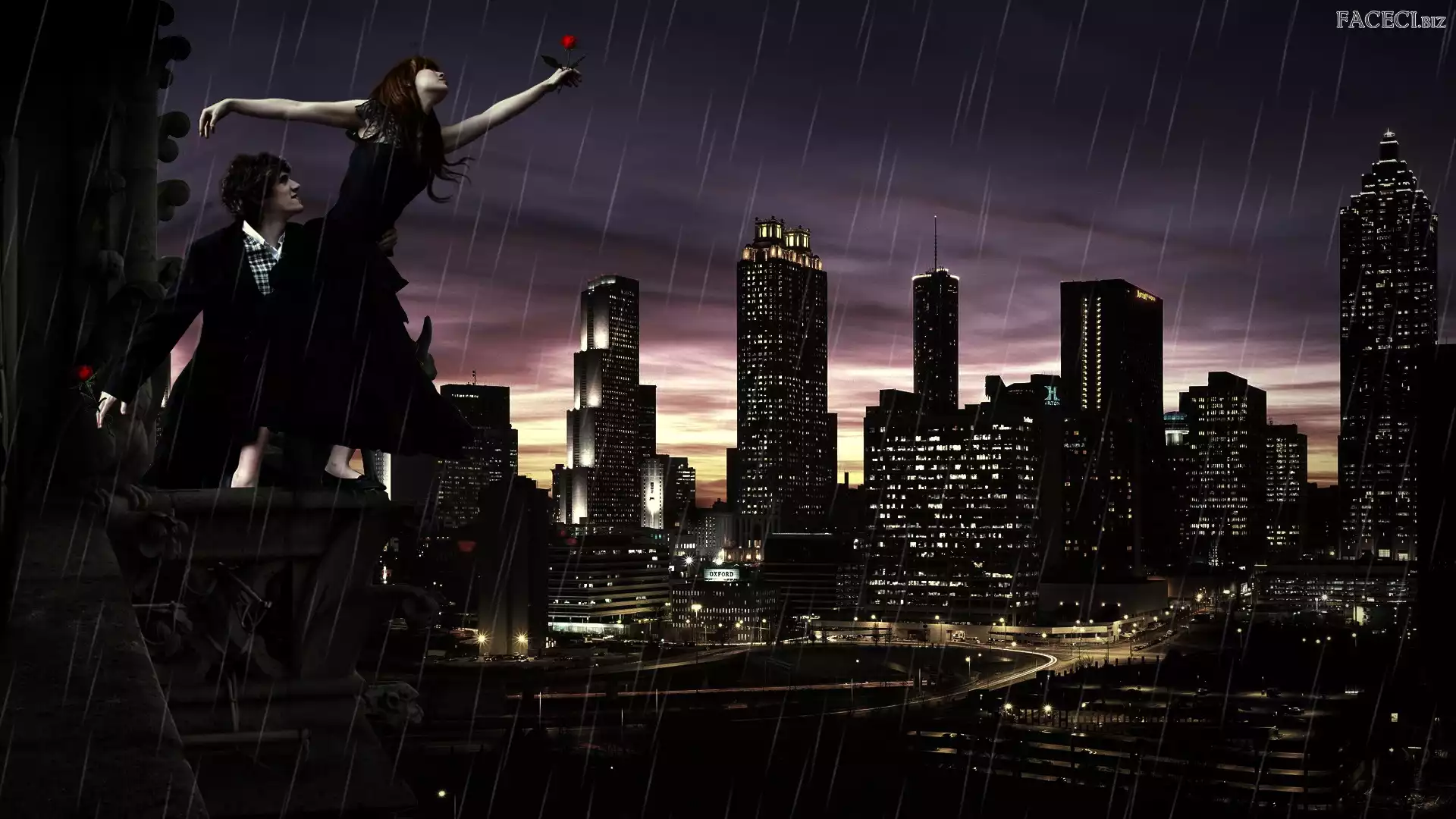 Deszcz, Nocą, Mężczyzna, Kobieta , Miasto - faceci.biz